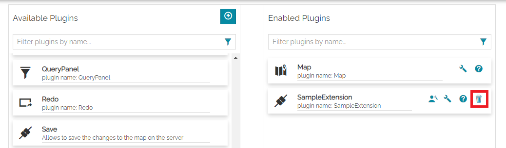 The MapStore administrator can also install a custom plugin by using the Add extension to MapStore button
