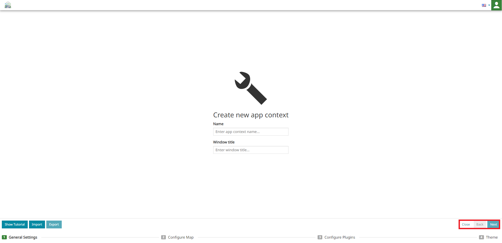To create the context viewer, the map configuration like the one described here opens so that the user can set the initial state of the context map.