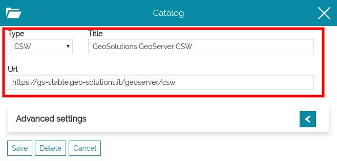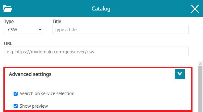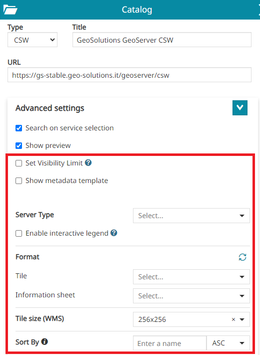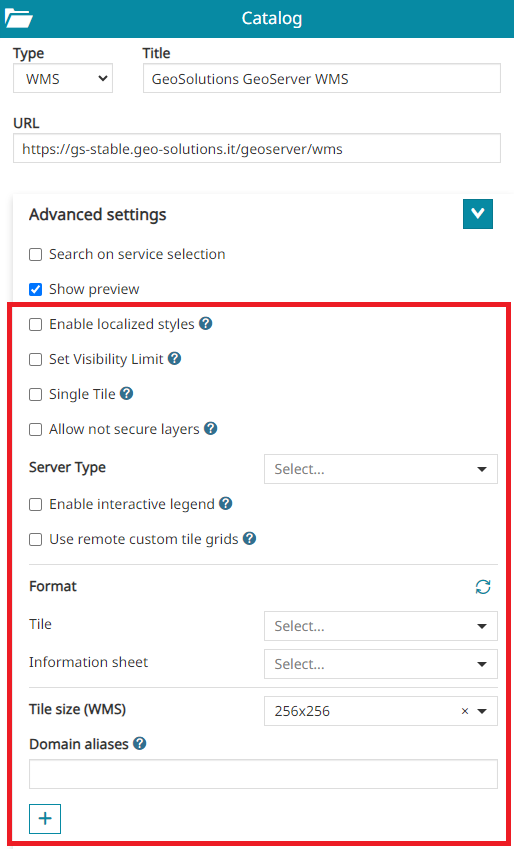In addition to the standard options, only for WMS catalog sources, through the Advanced Settings the user can configure also the following options: