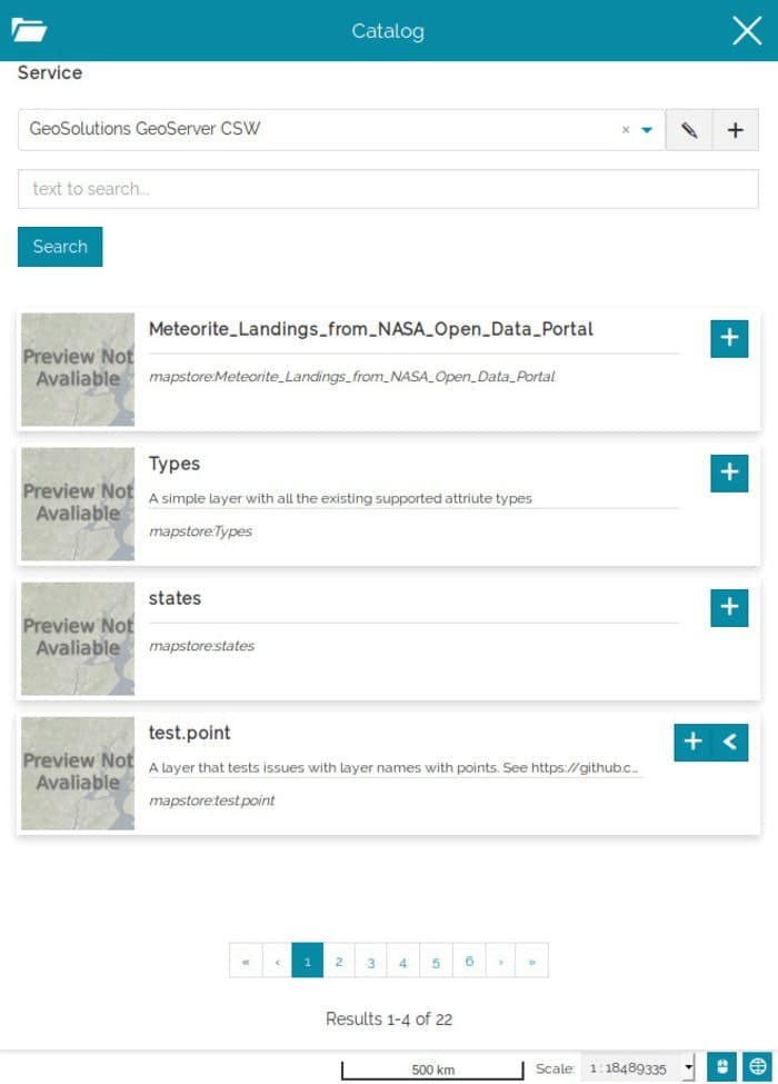 When the user saves this custom catalog service and clicks on search, he will see only one result, that can be added on the map: variants are not currently sopported in MapStore for this provider type.