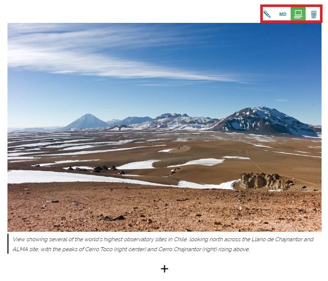 to show/hide the description under the image: this button is present only if a description has been provided for the image resource (see the Media Editor tool for example) -