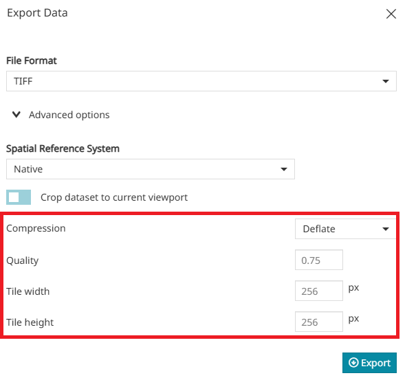 Only for Raster layer (and if the WPS Download process is available) the user can open the Advanced options to choose: