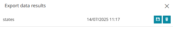 The Export Data Result provides the list of exports processes started by the user and their status: as soon as the WPS completes the export operation, its status is reported by MapStore to the user (in progress, completed, and so ready for download, or failed). Therefore, the user can: