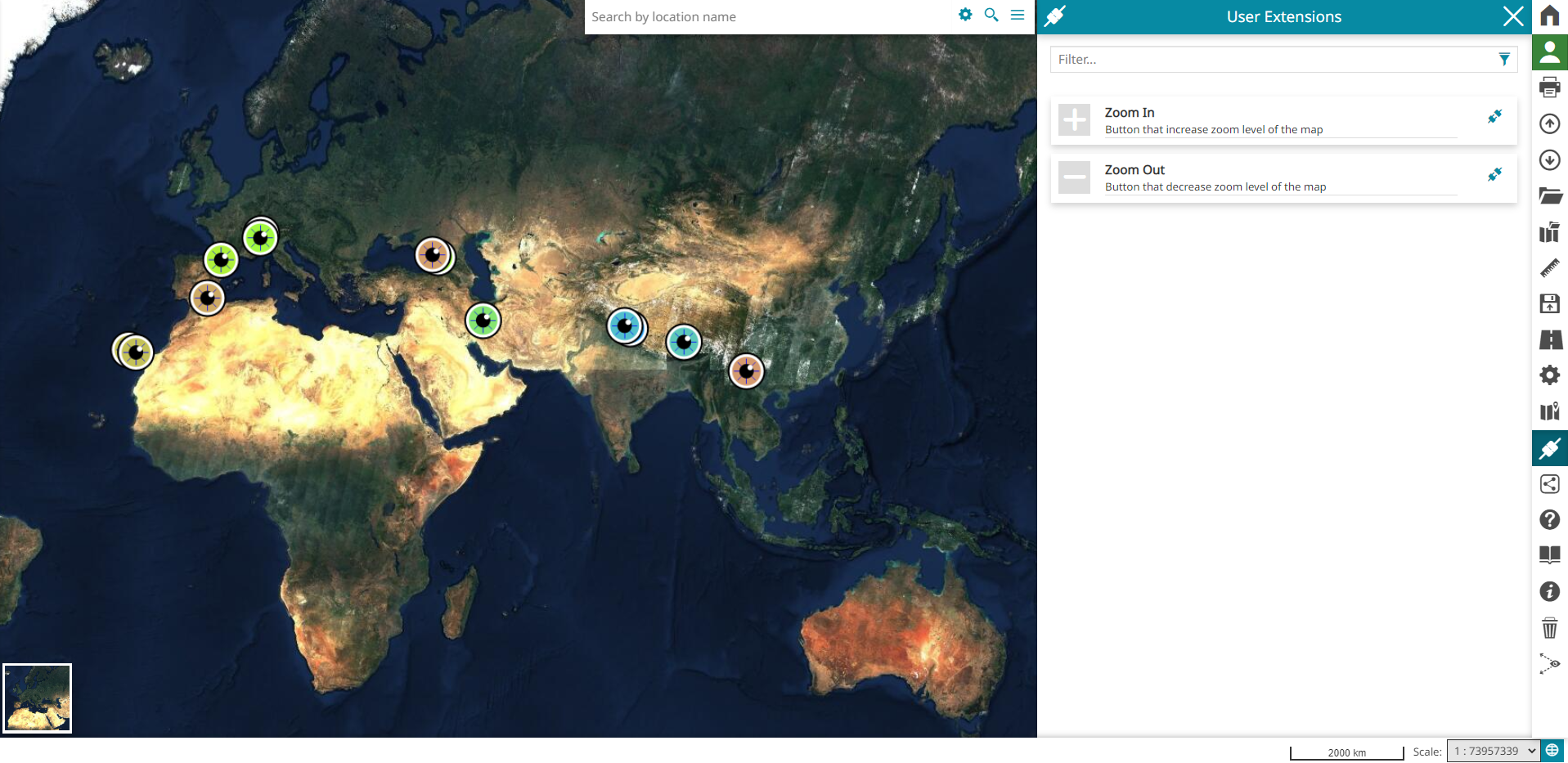 button, present in the Side Toolbar, provide to the user the list of extensions ready to be activated for the viewer: that list of available extensions for the user has been defined by the the administrator during the Application Context creation.