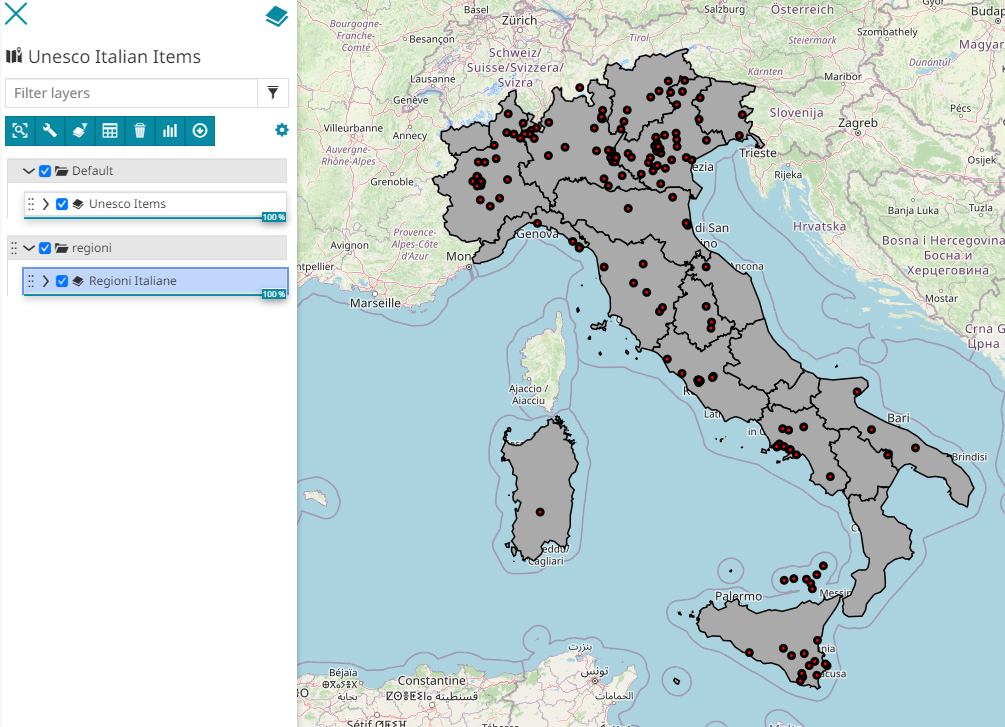 In order to better understand this type of filter, let's make an example. We suppose that the user want to filter the Italian Regions with the Unesco Item's one:
