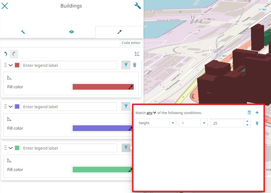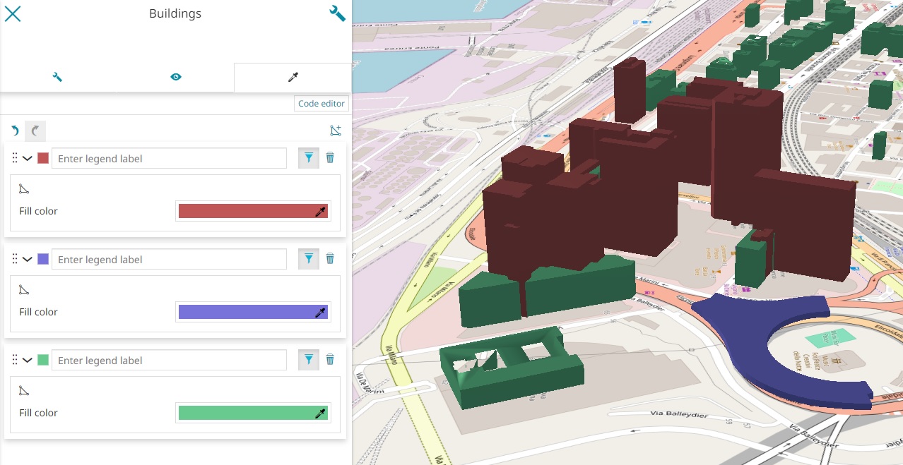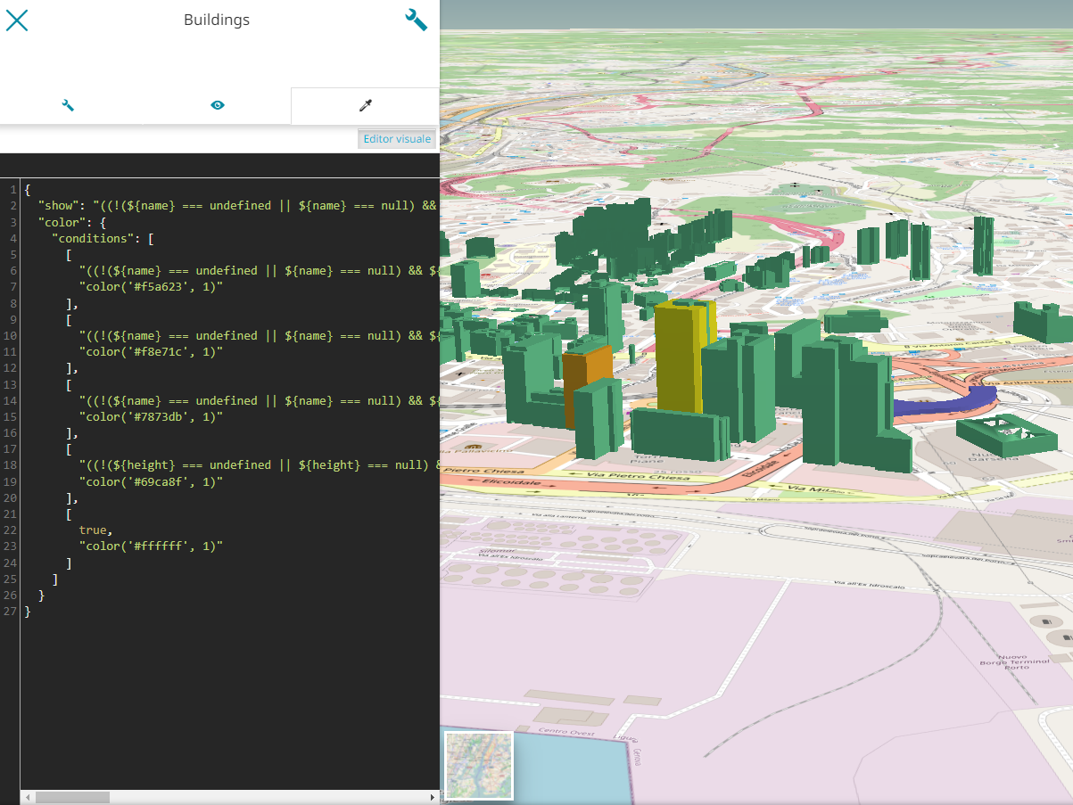 For the 3D Tiles styling, while with the Code Text Editor it is possible to leverage completely on the styling specifications: