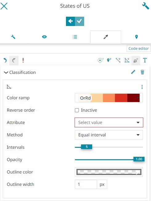 MapStore allows you to classify the style based on the attributes of the layer. The Classification style is available for Marker, Line, Fill and Text by clicking on the