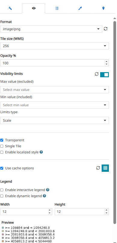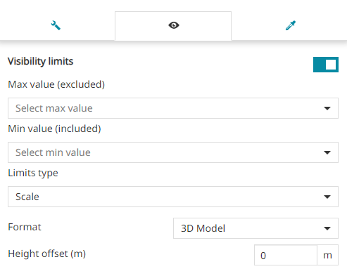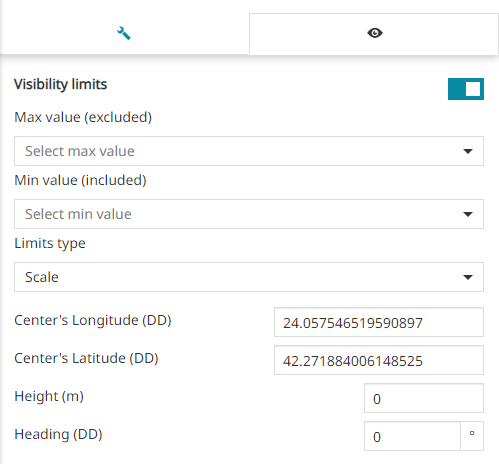 Enable/disable the Visibility limits to display the layer only within certain scale limits. The user is allowed to request the