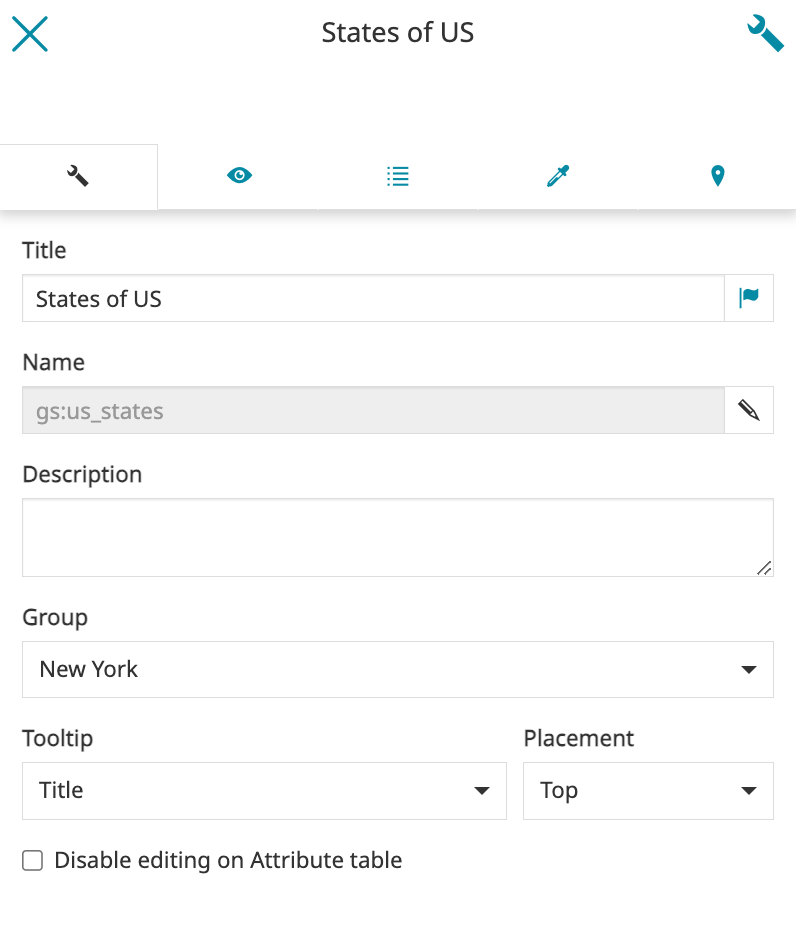 icon will not be available in the Attribute Table and in theIdentify panel for the selected layer. This option is unchecked by default and it can be controlled only by users with editing permissions on the map.