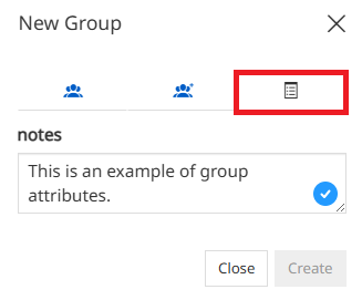 On the Attributes tab the admin can associate some attributes to user groups. By default MapStore allows to enter a "notes" attribute for each group. The attributes list can be configured by editing the plugin configuration in localConfig.json.