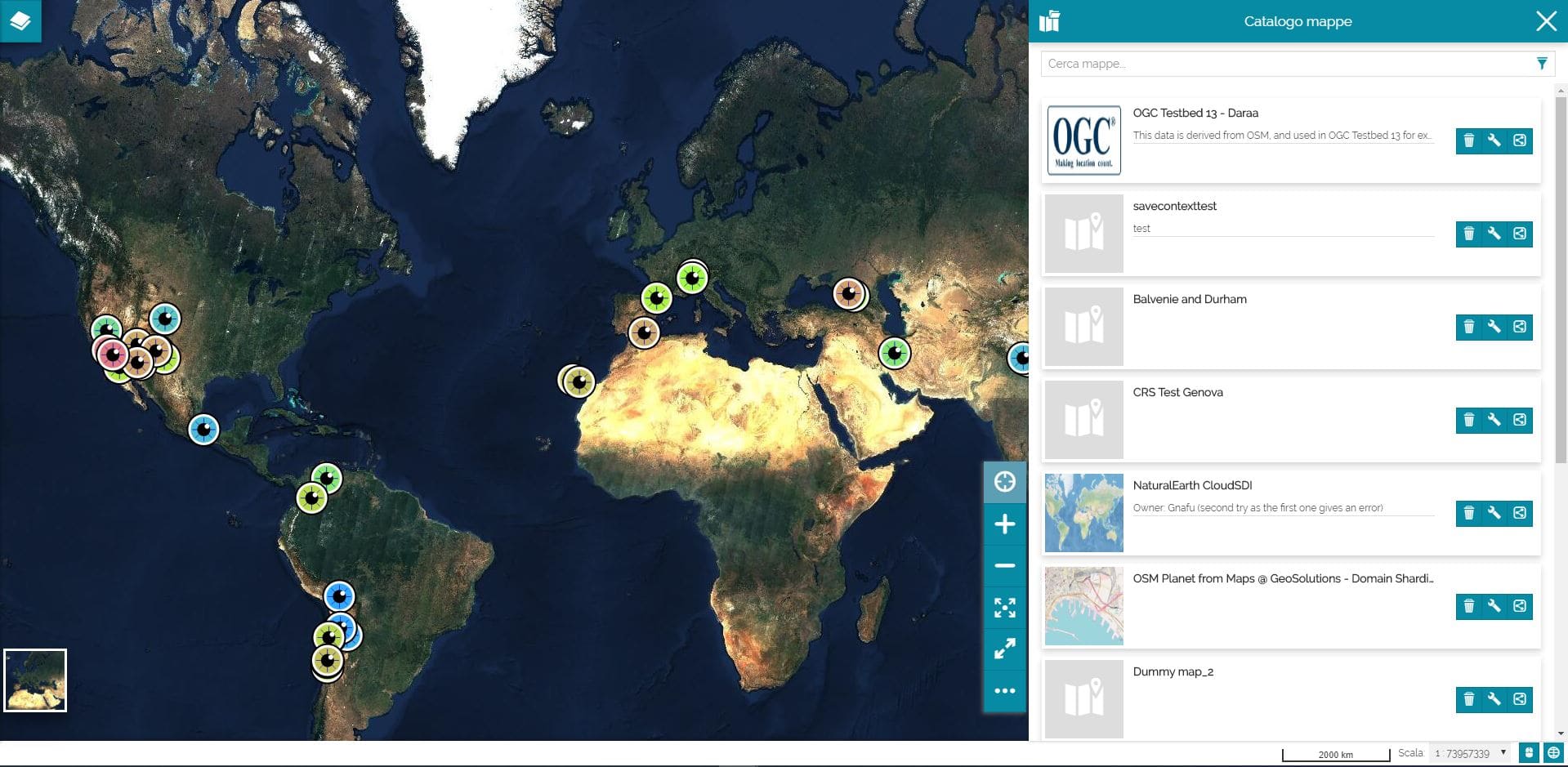 Selecting a map card in the Map Catalog list, the map currently in use will be replaced. In addition, if the selected map has been created in a context, also the viewer will be replaced with the one of the related map context.