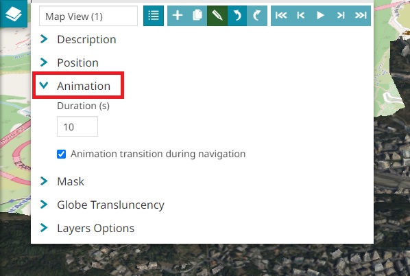 The Map Views is a MapStore tool useful to set up multiple map views differently configured and switch between them. A navigation functionality is also provided to automatically activate each view one after the other in temporal sequence.