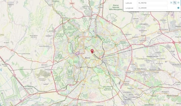 Performing a Search by coordinates the user can zoom to a specific point and place a marker in its position. That point can be specified typing the coordinates in two different formats: