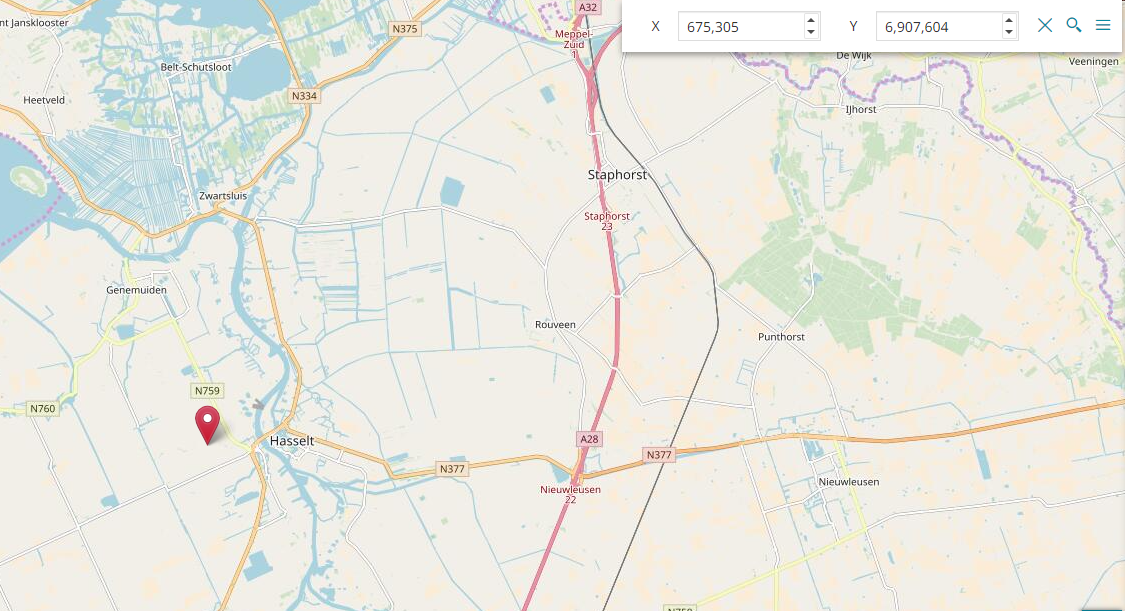 MapStore allows the user to Search by current map CRS, which can zoom to a specific point and place a marker in its position. That point can be specified typing the X and Y coordinates of the map.