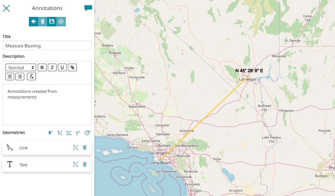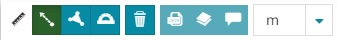 The Measure tool in MapStore allows the user to perform different kind of measurements (like distance, area and bearing etc.) on the map. It also provides some additional functionalities that are described in this section of the documentation. The tool is accessible from the Side Toolbar by selecting the