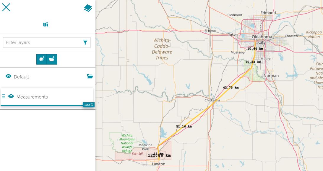 The user can perform more than one measurement simultaneously on the map and then cancel it with the Clear Measures button
