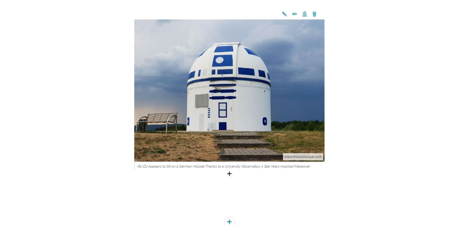 Media Sections are similar to Paragraph Sections but the main difference is that as soon as the story editor try to add a new Media Section, the Media Editor appears, asking to define the media that is going to be added. An example of a new Media Section with an image added can be like the following: