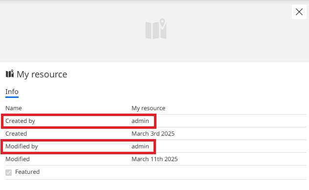 Admin users can also see who created and modified the resource. An example in the image below: