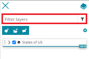 With the TOC it is also possible to perform a search between the added layers. This operation can be done simply by typing the name (o part of it) of the layer in the search bar: