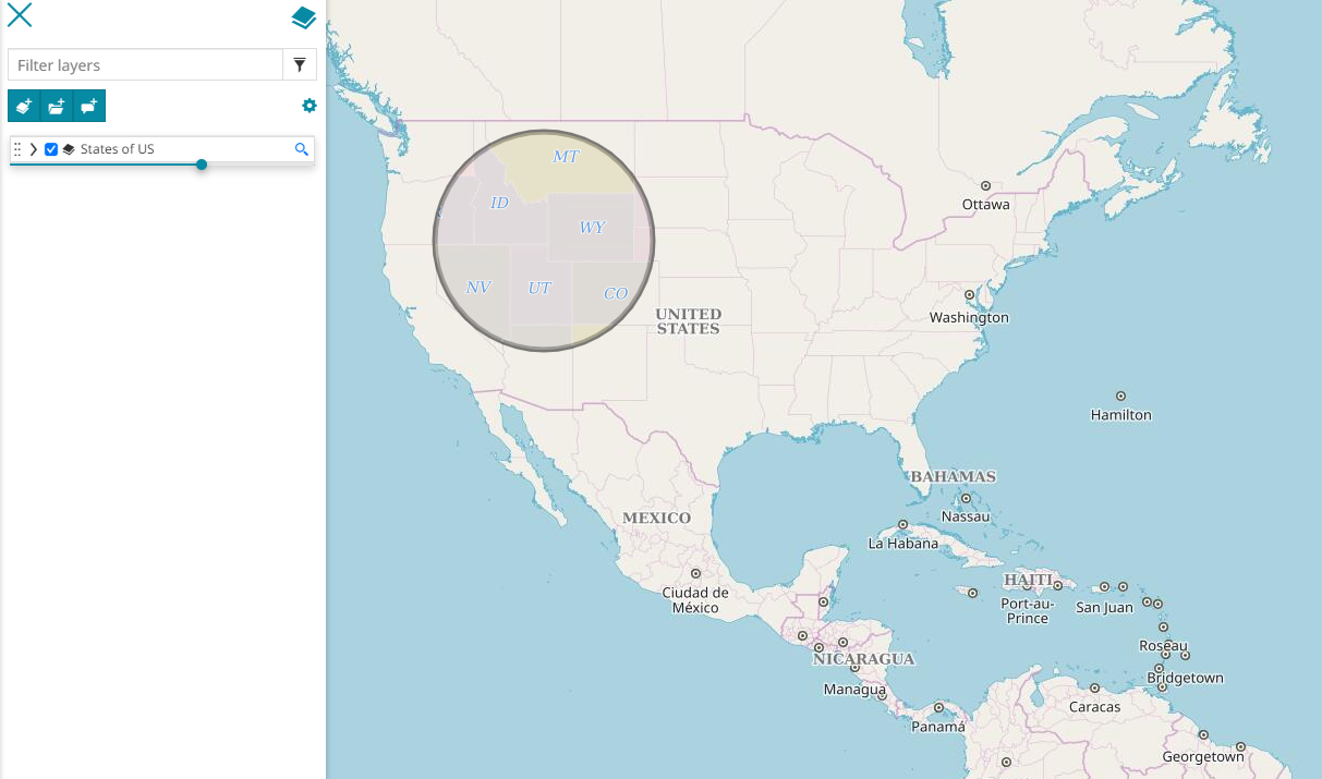 - Tune the layer transparency in map by scrolling the opacity slider.