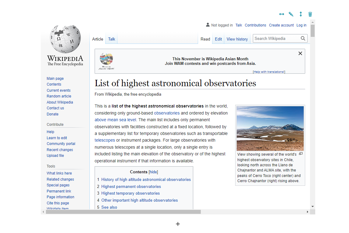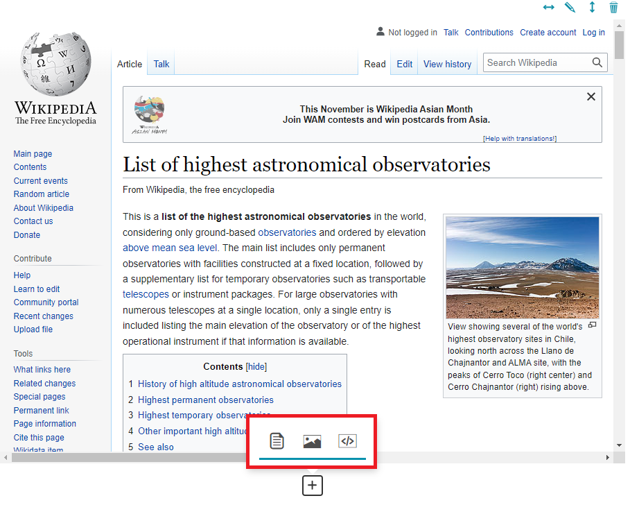 Below an example of a Web Page Section that embed a Wikipedia site page: